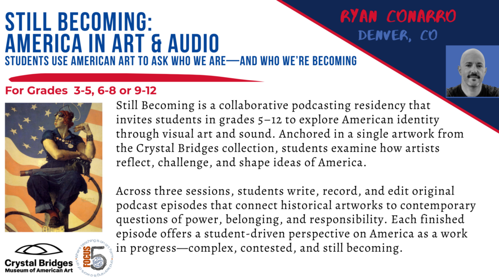 Still Becoming: America in Art & Audio– Virtual Artist Residency for Grades 3-5 or 6-8 or 9-12 led by Ryan Conaro